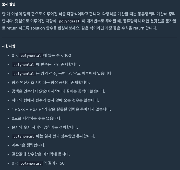 프로그래머스 - 다항식 더하기알고리즘 2024. 4. 5. 01:29