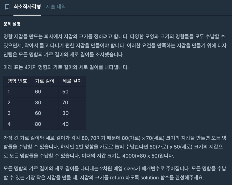프로그래머스 - 최소 직사각형알고리즘 2024. 4. 12. 00:05