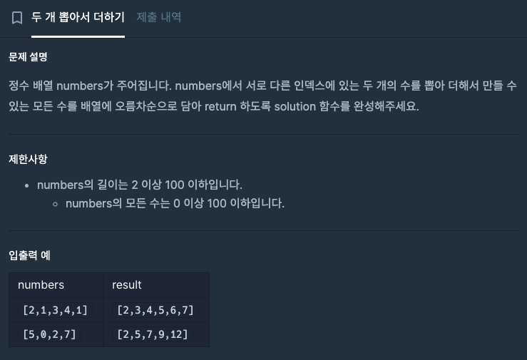 프로그래머스 - 두 개 뽑아서 더하기알고리즘 2024. 4. 13. 11:19