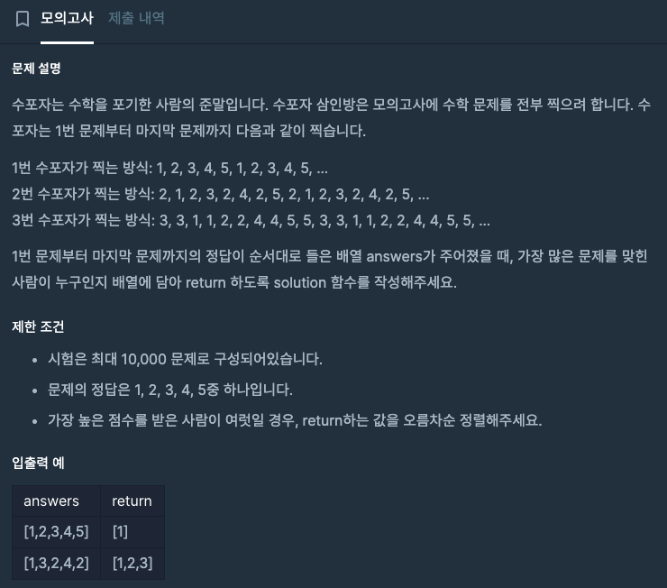 프로그래머스 - 모의고사알고리즘 2024. 4. 21. 08:11