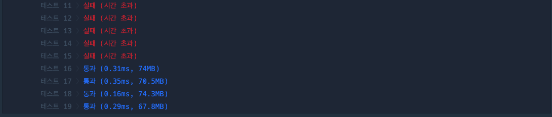 시간 초과 이외에도 전체적인 시간 소요가 절반정도 줄었습니다.