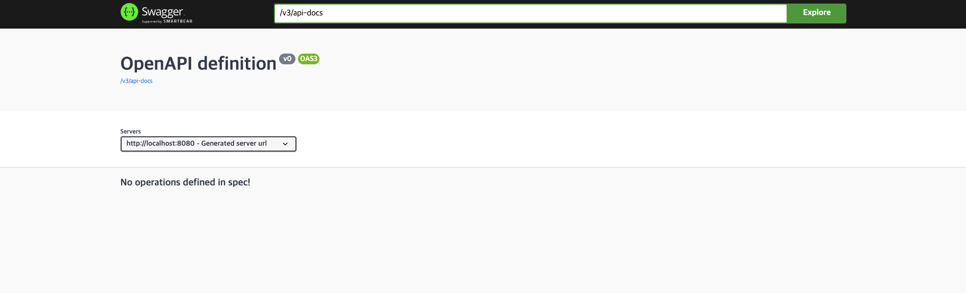 import org.springframework.context.annotation.Configuration; import org.springframework.security.config.annotation.web.builders.HttpSecurity; import org.springframework.security.config.annotation.web.configuration.EnableWebSecurity; import org.springframework.security.config.annotation.web.configuration.WebSecurityConfigurerAdapter; @Configuration @EnableWebSecurity public class SecurityConfig extends WebSecurityConfigurerAdapter { @Override protected void configure(HttpSecurity http) throws Exception { http .authorizeRequests() .antMatchers("/swagger-ui.html", "/swagger-ui/**", "/v3/api-docs/**").permitAll() .anyRequest().authenticated() .and() .csrf().disable(); } }를 통해, 별도의 로그인 없이 페이지에 접속 가능합니다.
