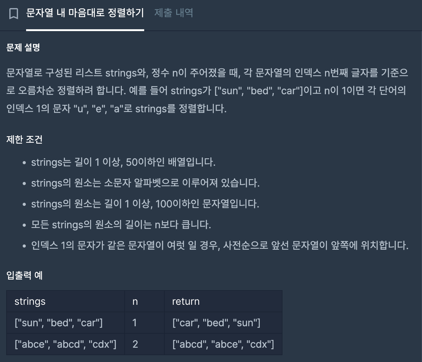 프로그래머스 - 문자열 내 마음대로 정렬하기
